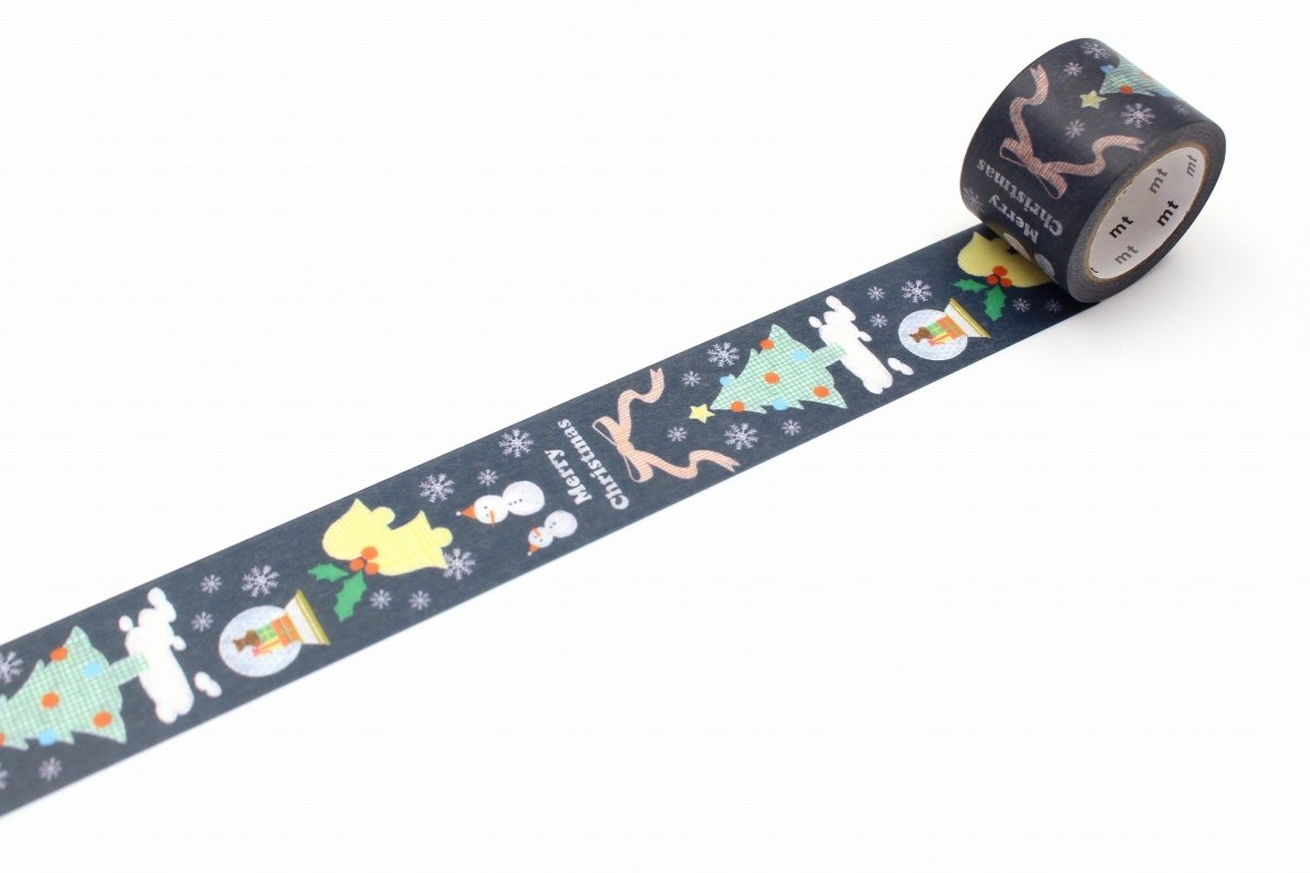 Washi Tape Merry Christmas - Blackboard från Mt, masking tape. Dekorationstejp på tema jul. Rullen är 30 mm bred och det är 7 meter tejp. FSC-certifierad.