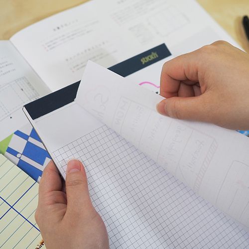 "Självhäftande rutade ark i en notepad, fäster överallt om och om igen utan att skada underlaget. 50 ark 254 x 178 mm."