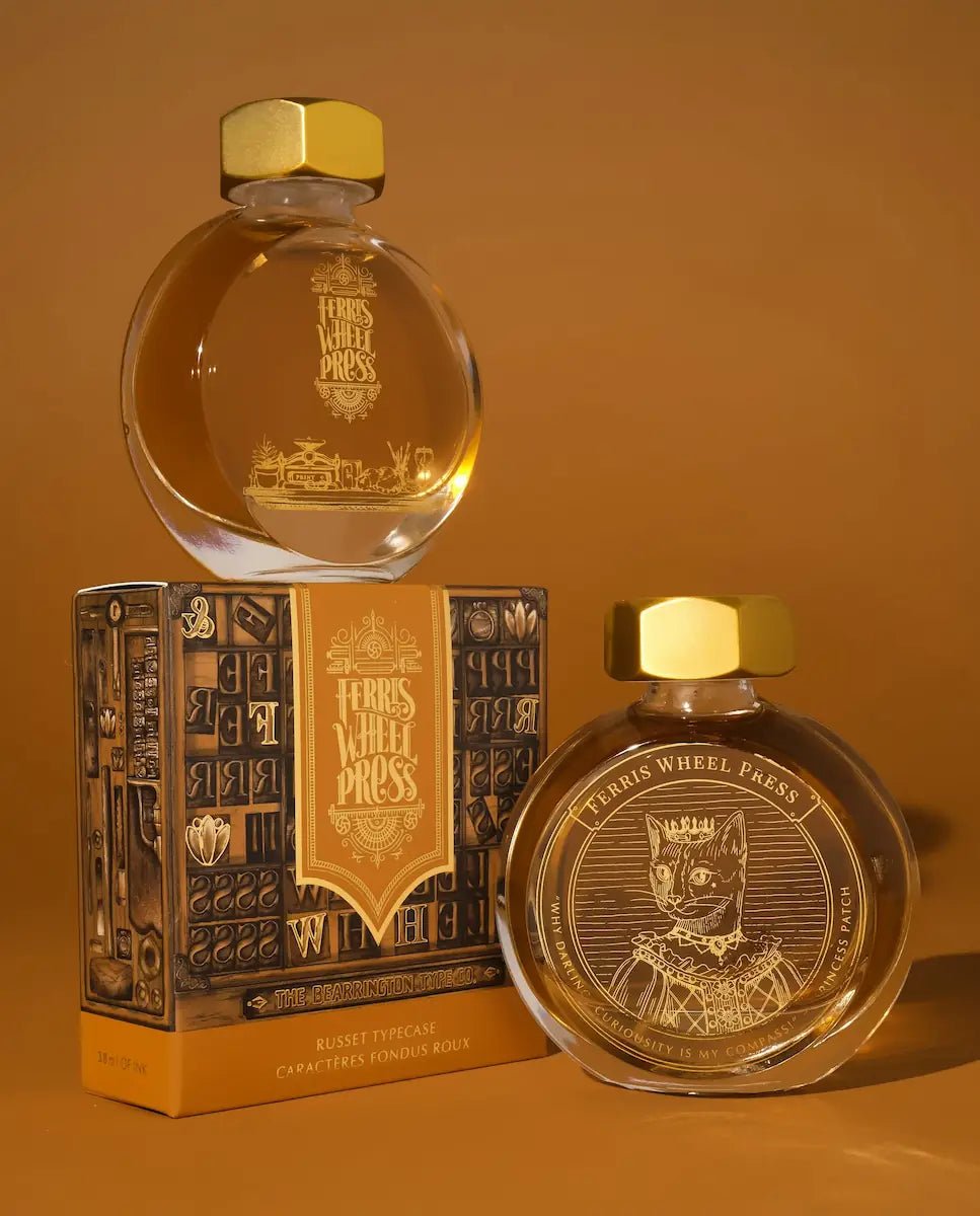 Bläckflaska 38 ml - Russet Typecase från Ferris Wheel Press. Bläckflaskorna från Ferris Wheel Press finns i en mängd vackra färger, i ännu vackrare flaskor och kartonger. Vattenbaserat bläck, 38 ml.