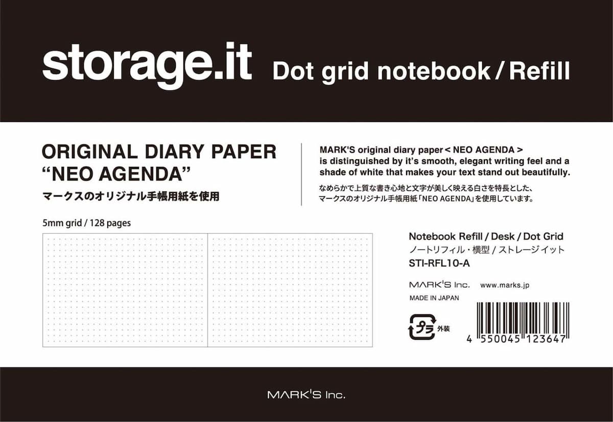 Notebook Storage.it A6 Desk Dotted - Refill från Mark's Inc. Refill av anteckningsboken som passar i pärmarna Storage.it i formatet A6 Desk. Refillen är trådbunden och inlagan är dotted med 5 mm mellanrum.