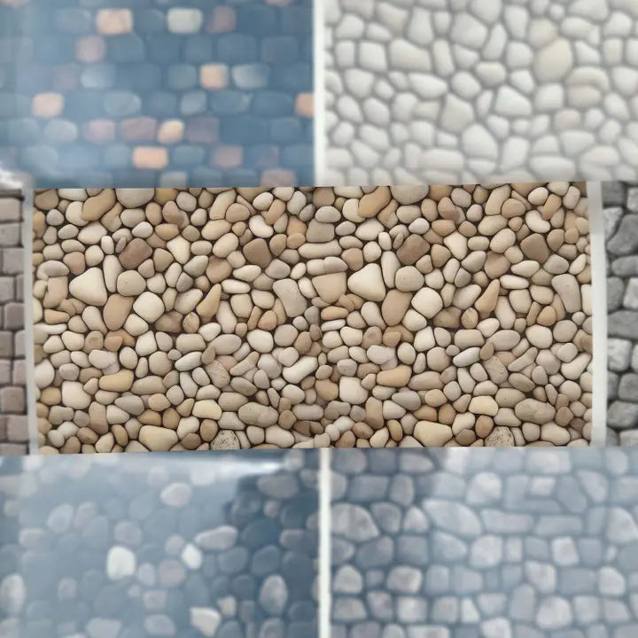 Pet Tape - MIC - Cobblestones Matte 70 mm från MIC & MIM Premium Paper Shop. Rullen är hela 70 mm bred. Det är 5 meter tejp och varje design loop är vid 96 cm. Klipp eller skär ut det valda område, sedan en plastfilm på baksidan som pillas bort.