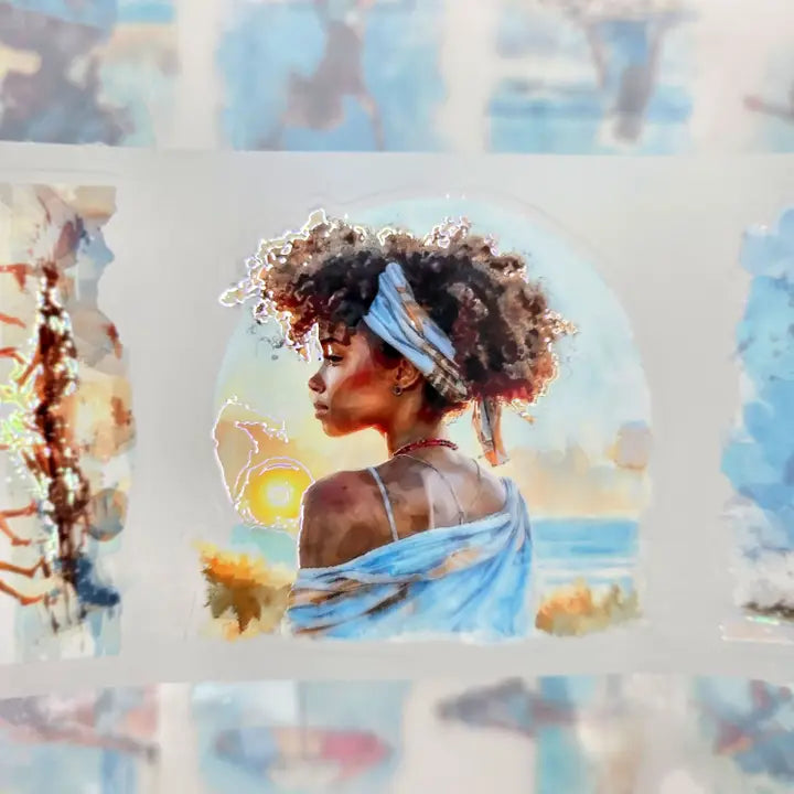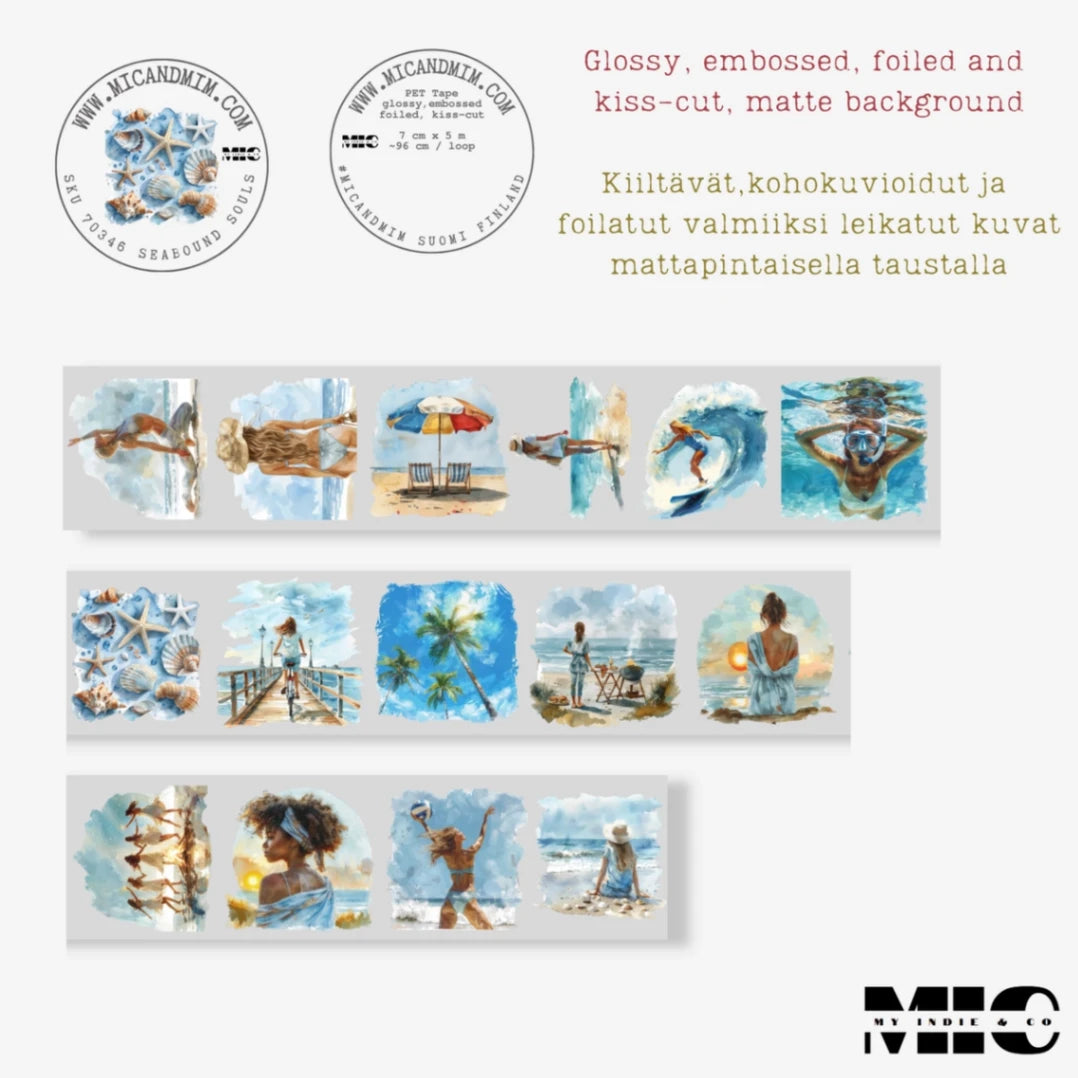 Pet Tape Pre-cut - MIC - Seabound Souls 3D Foiled 70 mm från MIC & MIM Premium Paper Shop. Rullen är hela 70 mm bred. Detta är stickers, det är skuret runt motiven. Det är 5 meter tejp och varje design loop är vid 96 cm. Matt bakgrund och har en plastfilm på baksidan.