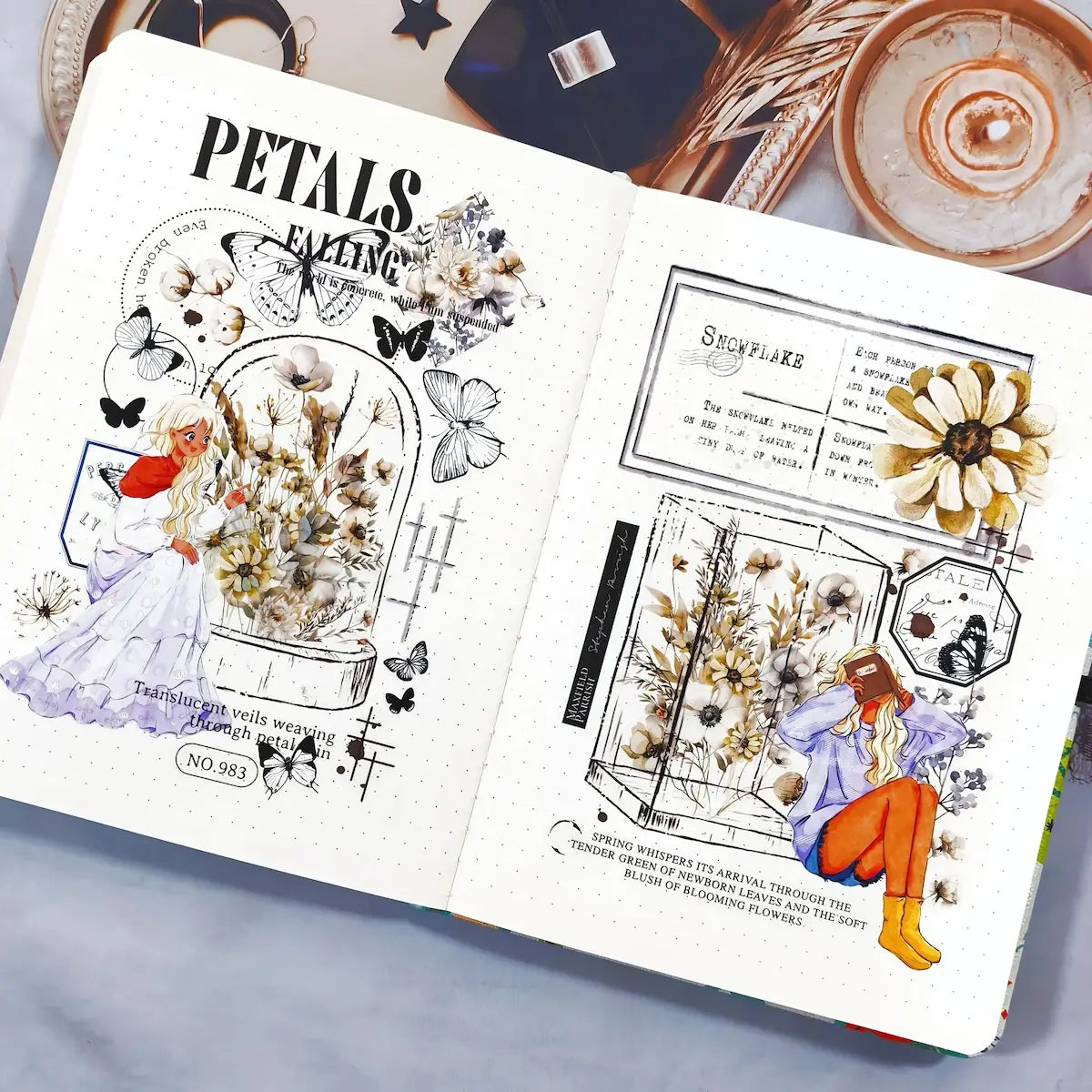 Sticker Pet Tape - Pre-cut - Frosted Meadow - 70 mm från Washi Tape shop. Rullen är hela 70 mm bred. Detta är stickers, det är skuret runt motiven. Det är 5 meter tejp och varje design loop är vid 100 cm.