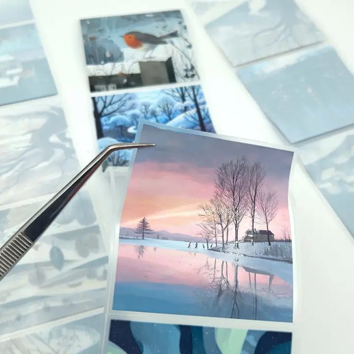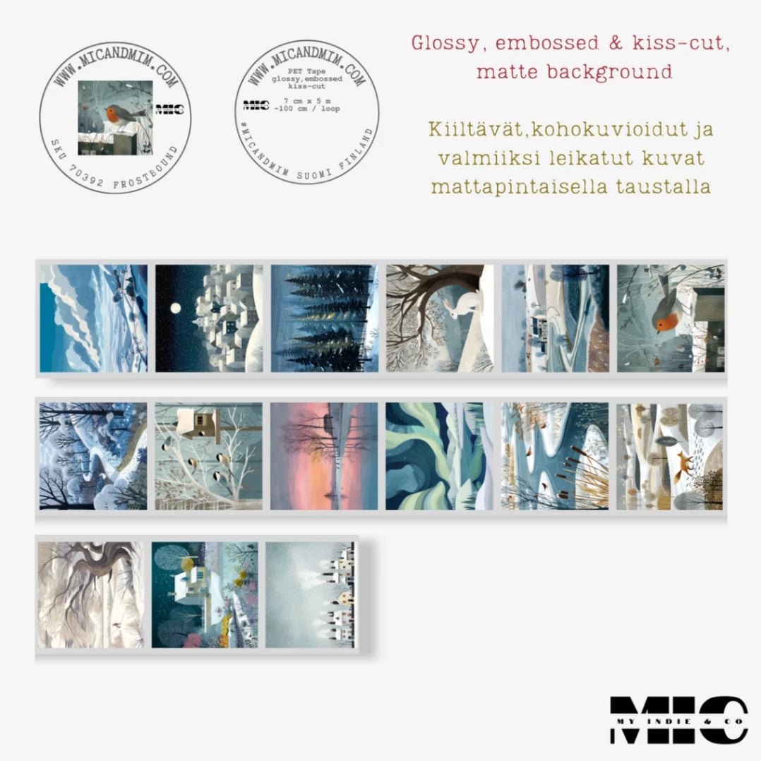 Pet Tape Pre-cut - MIC - Frostbound 3D Glossy 70 mm från MIC & MIM Premium Paper Shop. Rullen är hela 70 mm bred. Detta är stickers, det är skuret runt motiven. Det är 5 meter tejp och varje design loop är vid 96 cm. Matt bakgrund och har en plastfilm på baksidan.