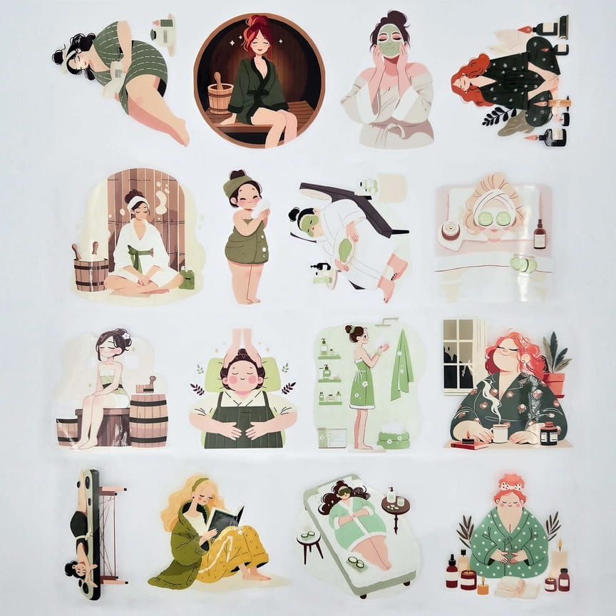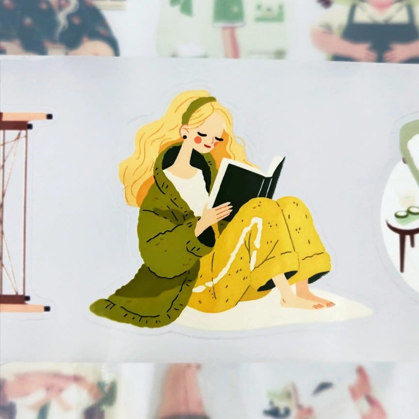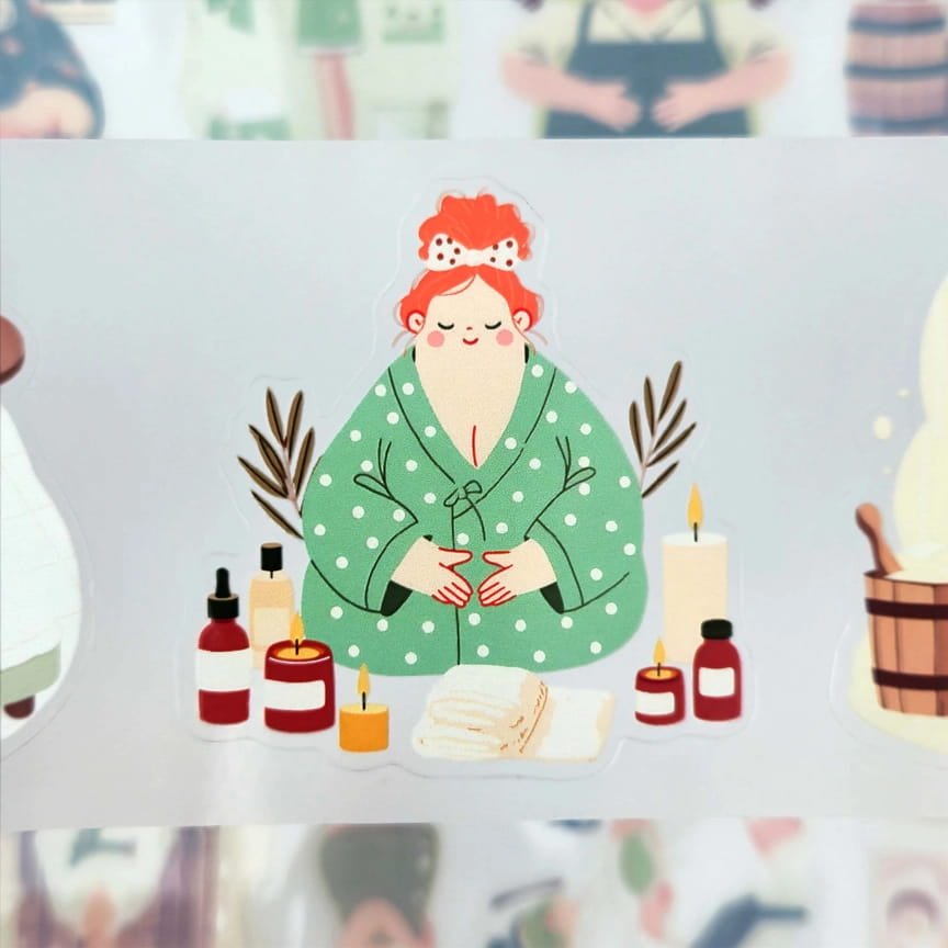 Pet Tape Pre-cut - MIC - Peaceful Pause 3D Glossy 70 mm från MIC & MIM Premium Paper Shop. Rullen är hela 70 mm bred. Detta är stickers, det är skuret runt motiven. Det är 5 meter tejp och varje design loop är vid 96 cm. Matt bakgrund och har en plastfilm på baksidan.