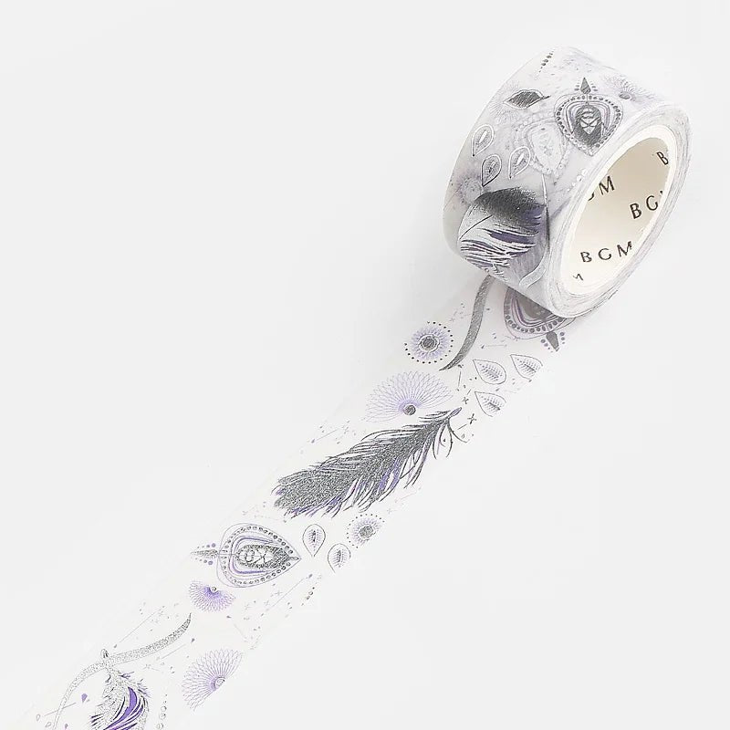 Washi Tape Black Day - Wing från BGM. Det finns även detaljer i metallic. Vacker att använda till dekoration och pyssel och en läcker detalj i en Bullet Journal. 20 mm bred och 5 meter tejp.