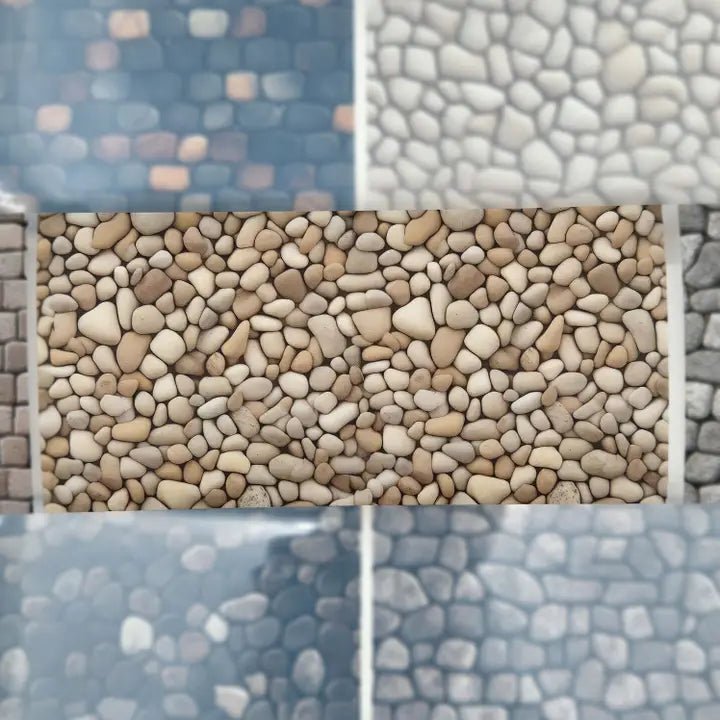 Pet Tape - MIC - Cobblestones Matte 70 mm från MIC & MIM Premium Paper Shop. Rullen är hela 70 mm bred. Det är 5 meter tejp och varje design loop är vid 96 cm. Klipp eller skär ut det valda område, sedan en plastfilm på baksidan som pillas bort.