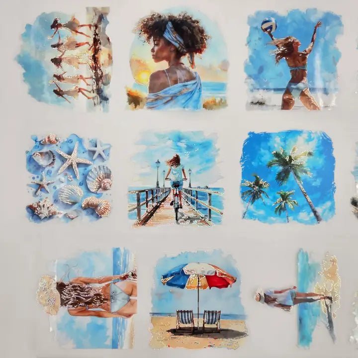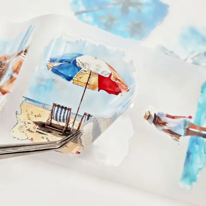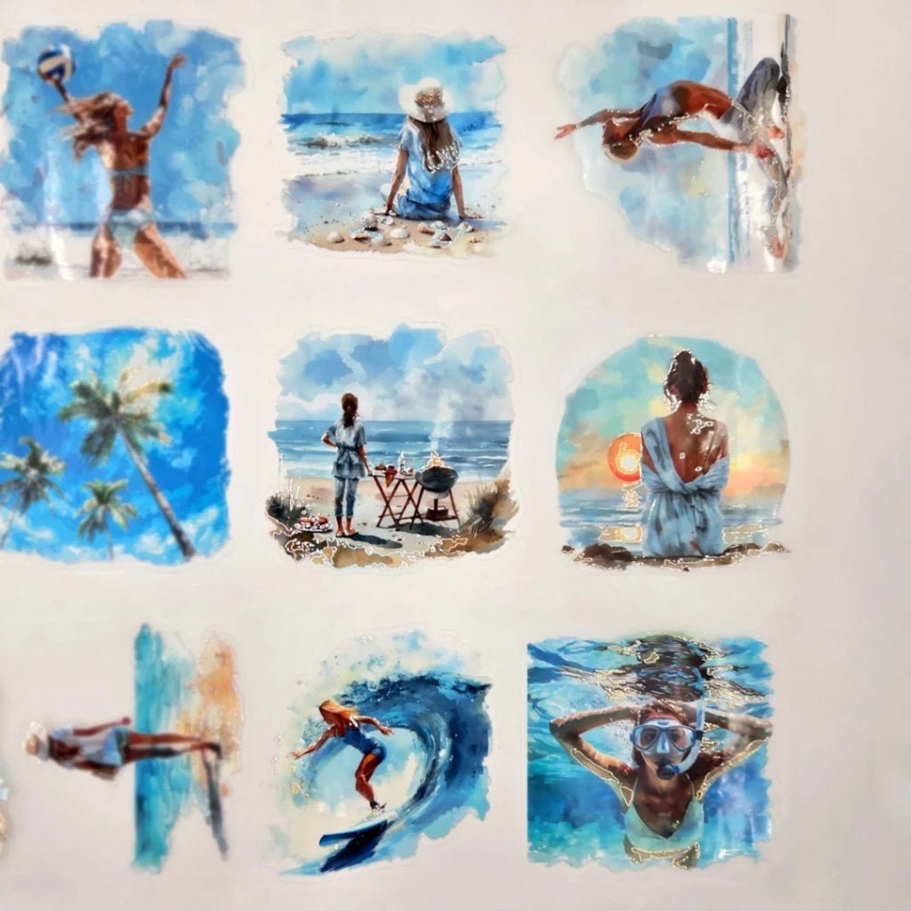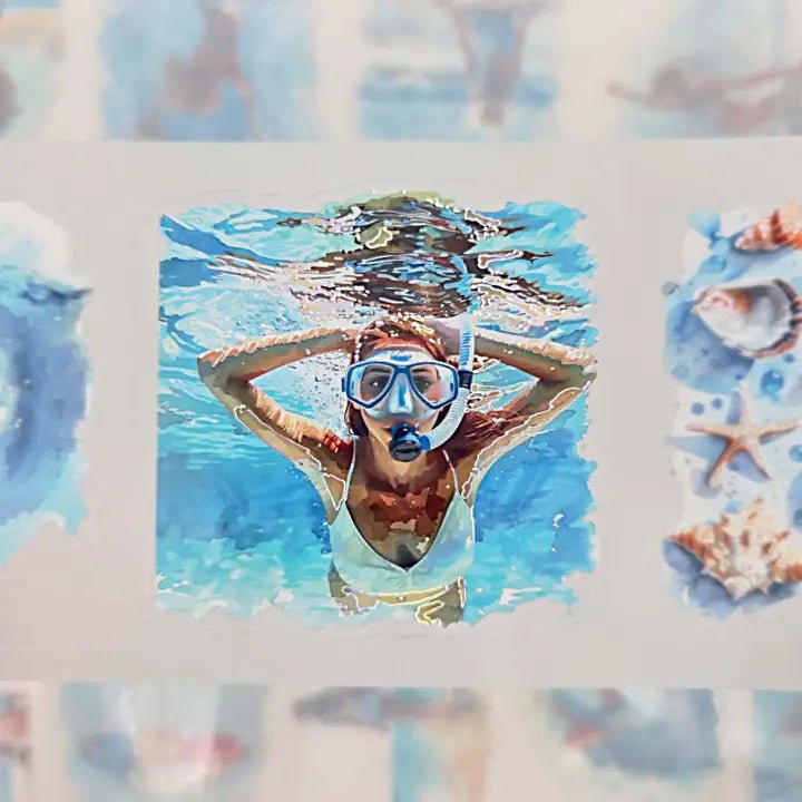 Pet Tape Pre-cut - MIC - Seabound Souls 3D Foiled 70 mm från MIC & MIM Premium Paper Shop. Rullen är hela 70 mm bred. Detta är stickers, det är skuret runt motiven. Det är 5 meter tejp och varje design loop är vid 96 cm. Matt bakgrund och har en plastfilm på baksidan.