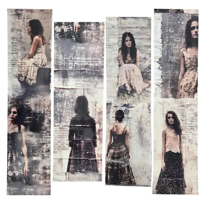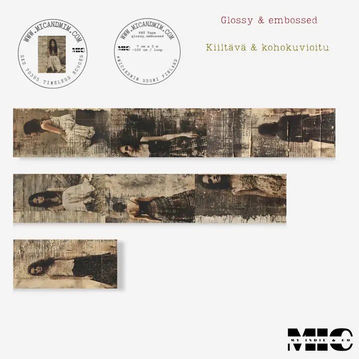 Pet Tape - MIC - Timeless Echoes Glossy & Embossed 70 mm from MIC & MIM Premium Paper Shop . The roll is a full 70 mm wide. It is 5 meters of tape and each design loop is 96 cm. Plastic film on the back.