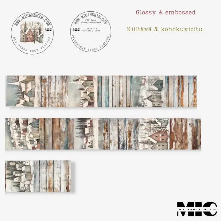 Pet Tape - MIC - Wood Village Glossy & Embossed 70 mm from MIC & MIM Premium Paper Shop . The roll is a full 70 mm wide. It is 5 meters of tape and each design loop is 96 cm. Plastic film on the back.