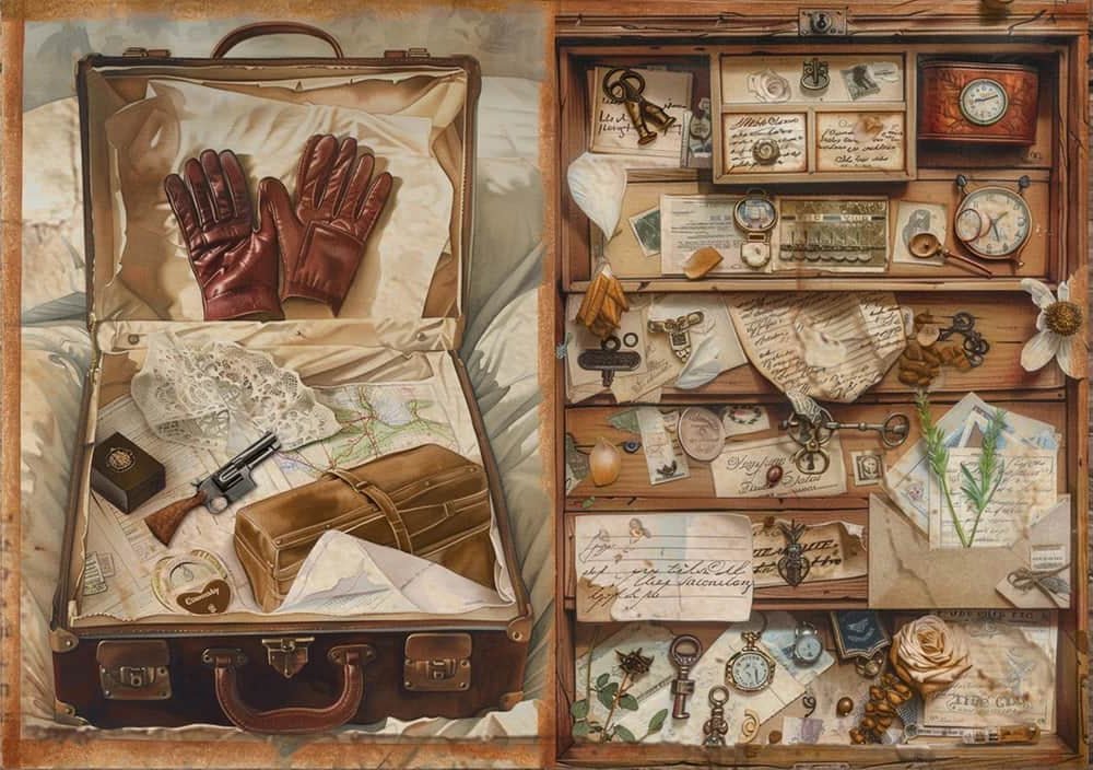 Rice Paper Art set - A5 - 8-pack - The Last Mystery from Ciao Bella . 8-pack with different motifs. A5 format with dimensions 14.8 x 21 cm. The rice paper is 28 GSM , lignin- and acid-free paper.