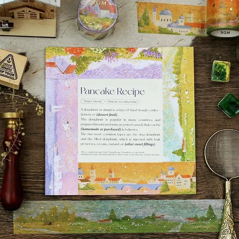 Garden is a beautiful washi tape in the Dot Drawing series from BGM. It has painted landscape motifs and nice details in metallic. Beautiful to use for decoration and crafts and a delicious detail in a Bullet Journal. 3 cm wide and 5 meters of tape.