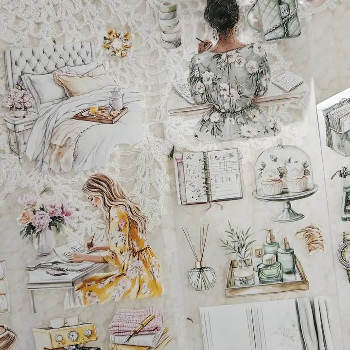 Transparent background and printed with so-called Crystal Ink which creates luster, relief and depth. You cut out the chosen motif and peel off the plastic film on the back.