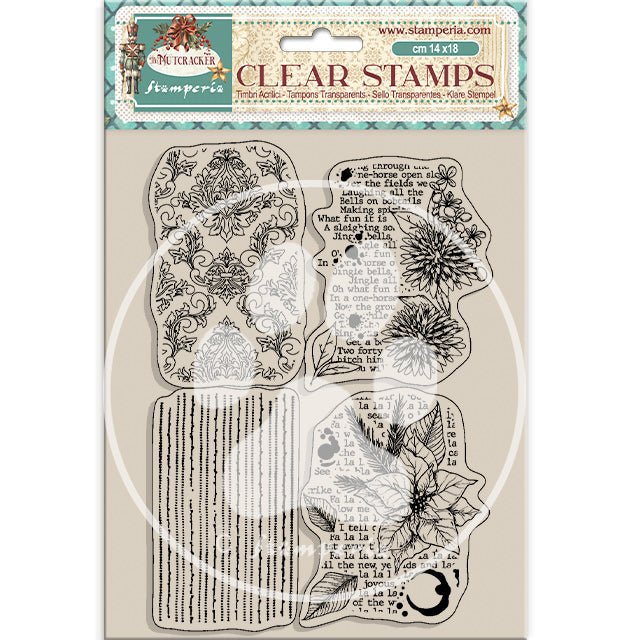 Clear stamps The Nutcracker - Poinsettia are decorative stamps from Stamperia. The stamps are attached to an acrylic block and you use with stamp pads (blocks and pads sold separately). After use, rinse the stamps with lukewarm water and then reattach them to the sheet they are delivered on. Incredibly fun for various forms of decorations and crafts. Popular for use as decoration in Bullet Journals.