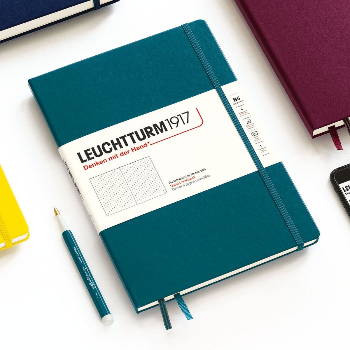 Dotted notebook Lt B5 Hard cover Black is a notebook that has a dotted insert, black hard cover and is in a B5 format from Leuchtturm1917. Good as a Bullet Journal if you want a slightly larger book than traditional A5. The paper is 80 GSM.